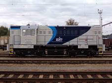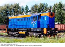 In 1970, ČKD works of Praha-Smichov built two prototype locomotives with factory designation T475.15. They were developed directly from earlier T475.0, but K12V170DR 12-cylinder diesel engine was replaced by six-cylinder in-line K6S230DR unit. These two prototypes differed in engine rating (846 kW and 920 kW) and suspension. T475.15 was, however, not favored by Czechoslovak state railways ČSD and despite successful tests both were finally sold to industrial operators (T475.1501 to Škoda automobile works at Mlada Boleslav and T475.1502 to the cement plant at Hranice, later sold to Loko Trans company); both are probably still in use, their class designation having been changed to 744.5. T475.15 was promptly developed into a heavier locomotive (weight in working order increasing from 60 to 72 tonnes) with more tractive effort, designation being changed to T448.05. This machine was very similar in appearance (although slightly wider and higher) and had the same prime mover, this time rated at 883 kW. As ČSD still tended to prefer T466.0 with license-built Pielstick 12PA4V185 diesel, this type was intended mainly for industrial operators, as a more powerful replacement for obsolescent classes T435.0 and T458.1. However, some (probably eleven) were eventually also used by Czech railways ČD. Production started in 1973 and lasted until 1989; in all, 620 machines were built in thirteen batches. Most of them still remain in use with various companies; two were sold to Italy and one to Northern Korea. These locomotives, later re-designated class 740 and commonly nicknamed ‘Kocour’ (Tomcat), are very popular in Czech Republic and Slovakia and are considered successful and reliable machines. Many machines of this class have been modernized to various extents. T448.0605 was fitted with two MTU 8V183TE12 engines (each rated at 327 kW) and electrodynamic brake; this locomotive, with factory designation T448.1, has higher driver’s cab to improve forward visibility and its appearance is thus completely different. Several machines were fitted with Caterpillar 3412 or 3512 engines. In some cases, modernized machines were given new designations and service numbers, e.g. 724.701 through 703 (Caterpillar 3412E DI-TA engine, 627 kW, lowered engine cowling) or 744.701 through 704 (Caterpillar 3512 DI-TA engine, 990 kW). In order to increase speed, three machines (740.793, 740.896 and 740.809), operated by Viamont company, were fitted with new reduction gears (ratio 77:16 instead of standard 78:15); they were re-designated 741.501, 741.502 and 741.503, respectively. As production of T466.0 was going nothing but smoothly and lagged behind schedules, a derivative of T448.0, designated T466.2, was finally accepted by ČSD and 494 machines were built in nine batches between 1977 and 1986, including 41 for track maintenance services and military railway units. This locomotive – now designated class 742 – is very similar in appearance, but lighter (axle load reduced to 16 tonnes, mainly due to redesigned frame) and faster, having the same reduction gear ratio as the class 741. Development of this type finally led to ČSD class 743 (ten examples built in 1988 and 1989, differing from 742 in equipment details) and factory type D12E for Vietnam (thirty built between 1986 and 1990). Despite having an indigenous design in the same class in Poland (SM31), it was decided to import heavy switchers – both for PKP and industrial operators – from the Soviet Union (TEM2) and Czechoslovakia. Limited output of Fablok, sole manufacturer of medium and heavy diesel switchers in Poland, was probably the main reason. Between 1976 and 1989, 161 T448 machines were bought from ČKD; none of them was used by PKP, so – a common practice with industry-owned locomotives – factory designation was retained, with suffix P for ‘Polsko’. First two examples went to the Gdańsk oil refinery (now Lotos company), but were later sold to sand railways. Compared with TEM2 (= SM48), T448Ps were much lighter and had lower axle load (despite TEM2 having the Co’Co’ axle arrangement). They were purchased mainly for mines, sand railways and oil-processing industry, and most of them are operated in southern Poland. In 1994 one machine, T448P-138, was fitted with new MTU 12V396TC12 12-cylinder diesel engine, rated at 680 kW, and modernized electric equipment. Until 2008, six more examples followed. This modification was made by PTKiGK Rybnik company that also modernized other diesel switchers of Czechoslovak origin. T448P-098 from the same company was fitted with an entirely new power-pack (which includes the 12V396TC12 diesel engine, rated at 700 kW, supplied by Romanian FAUR, and new generator). Further modernizations may follow. Polish T448Ps are often sent for major overhauls to Czech repair works and return with many minor improvements, corresponding to those introduced in Czech machines. In August 2008 two of them (T448P-046 and -047, owned by Transchem) were fitted with multiple control installations, in order to facilitate their use with heavier drafts. As with their counterparts in former Czechoslovakia, most locomotives of this type in Poland still remain in use. Largest fleets were owned by sand railways of Upper Silesia: PTKiGK Rybnik – 31 examples (2006), PTKiGK Zabrze (since January 2007, PTK Holding SA) – 17 examples (2004) and NZGTK Nowy Bieruń – 10 examples (2004). In January 2007, T448P were used by eleven private operators: CTL (4), Pol-Miedź Trans (2), PCC Rail (1), Lotos Kolej (2, leased), Orlen KolTrans (6), PTK Holding SA (35), PTKiGK Rybnik (32), STK (1), NZGTK Nowy Bieruń (9), Euronaft (4) and Transoda (4). These numbers have been taken mostly from rosters given in SK 3/2007 and www.przewoznicy.rail.pl. This list does not include several industrial operators which often operate single examples. Currently (November 2007), 131 T448Ps still remain in use. According to lists given in SK 3/2007, fifteen s